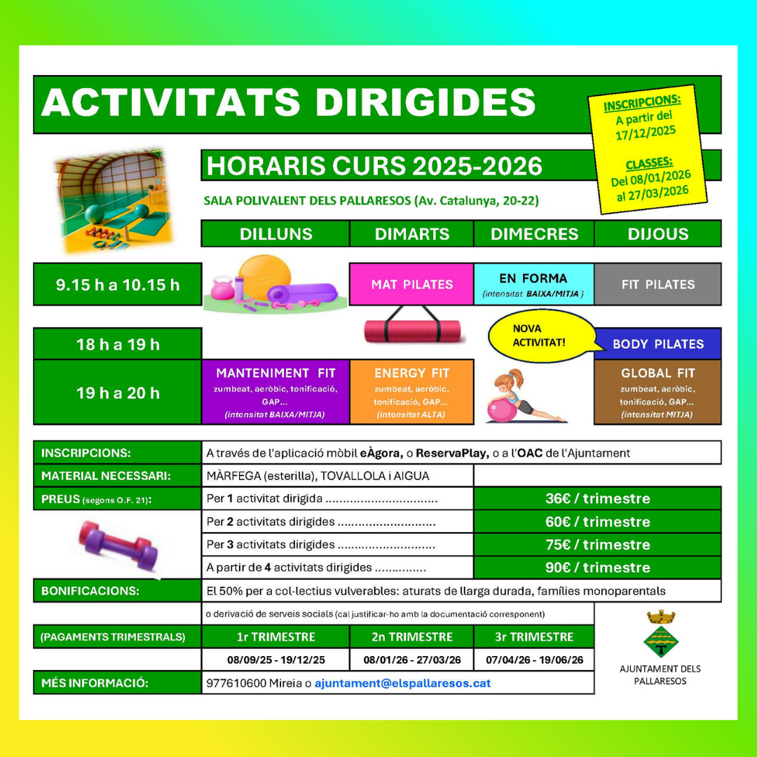 Dimecres: 9.15 a 10.15 h * EN FORMA
